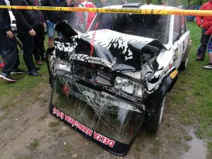 Előtte lévő nap is kicsit szerencsétlenül alakult mert etapon is eltévedtünk(hazai pályán…) aztán a prológ után a parc fermébe menet is akcióztunk és mindent össze vetve 1 perc 15 másodperces büntetéssel kezdtük a szombatot. Ennek ellenére úgy feküdtünk le aludni hogy a célba van vége a versenynek, bármi lehet nem aggódjuk túl. Számítottam a rajtba hogy csúszik és orrtolós is lehet az autó, felfelé végig figyeltem az autó viselkedését mindenhol tökéletes volt, nem úszkált, kigyorsításon se, és mire oda értünk úgy gondoltam itt is vehetek “bátrabb” féktávot. Aztán ott hirtelen betolta az orrát én pedig balra már eltekertem a kormányt aztán nagy hiba, álltam a fékbe.. elég rossz látvány volt hogy csak egy falat láttam magunk előtt. De a pálya széli autóversenyzők ezt is megoldottak volna. ?